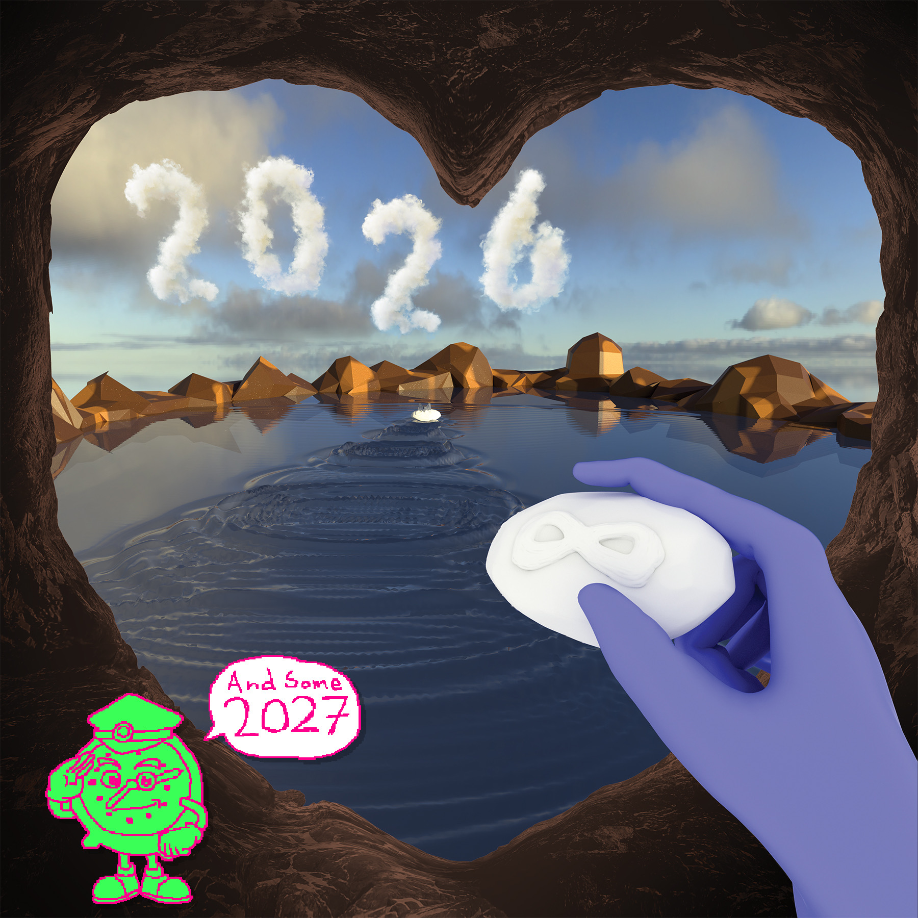 The year is 2026 and you are sleepwalking out of time. You reach, desperately, longingly, for any static artifact. Heraclitus said “everything flows” but you say “this world blows”. Grab a rock. Skip it across infinity. Skip it from May 2026 to May 2027. This is a new type of calendar. Transannual. Embrace modernity. Embrace mini. 6″ x 6″